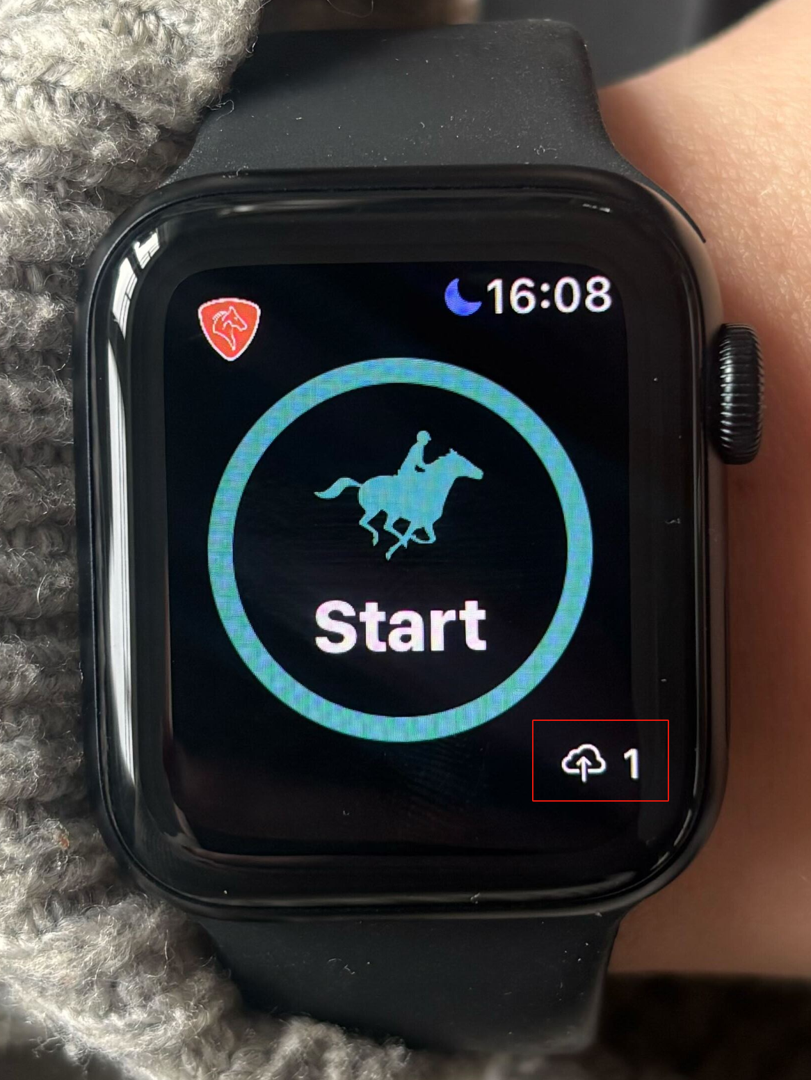 If it does not upload, be sure to keep the Equilab app open on your Watch until it reconnects to your phone and uploads the training via your phone's internet connection (WiFi or Cellular). You'll know when the training has been uploaded because the small upload symbol — a cloud with an upward arrow — will disappear from the bottom right corner of the watch's screen. The number next to the symbol indicates how many trainings are waiting to be uploaded.